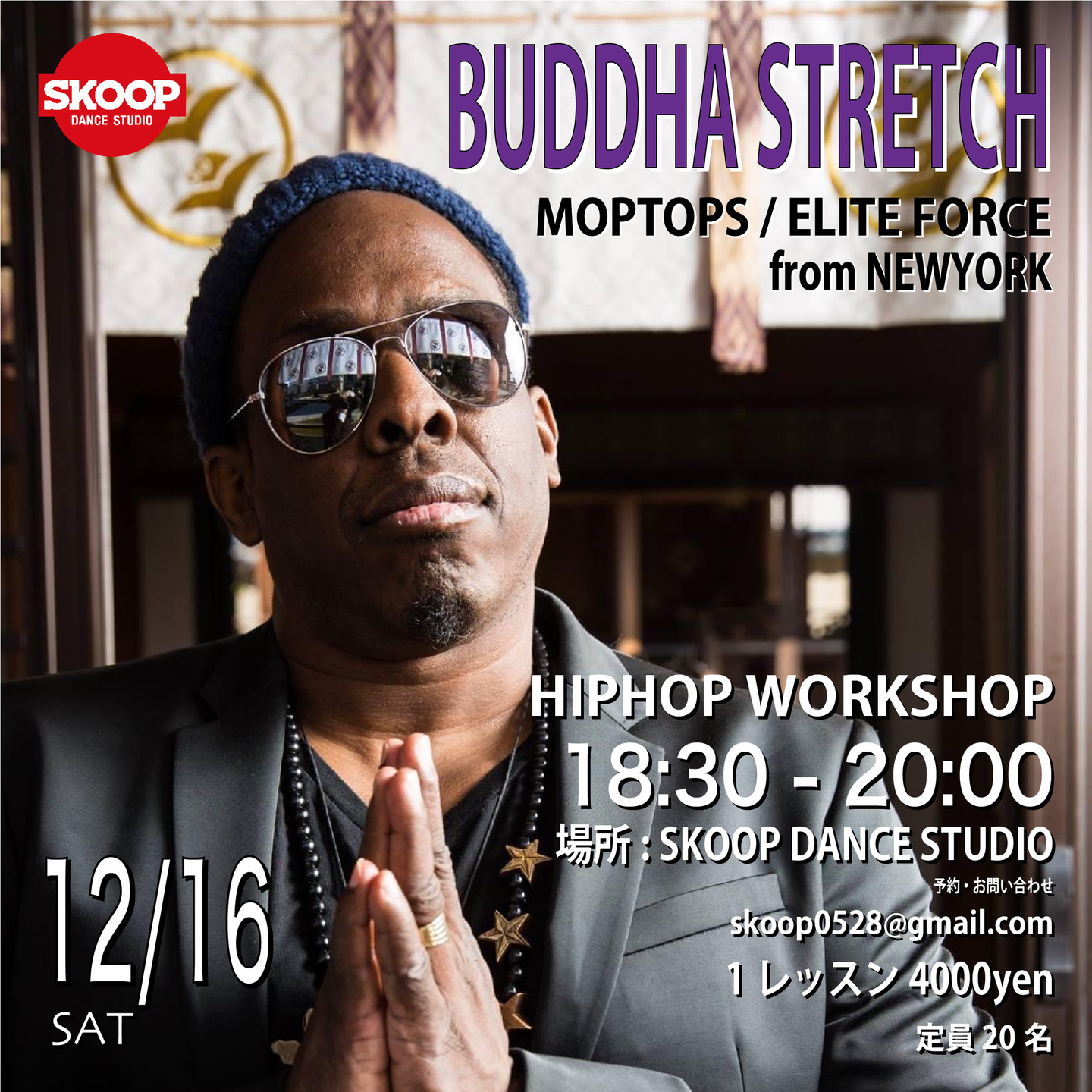 【BUDDHA STRETCH SPECIAL HIPHOP WS】 日時 2023年12月16日(土)/場所 大手町カルチャー3F /時間 18:30 ~ 20:00 /料金 1レッスン4000円