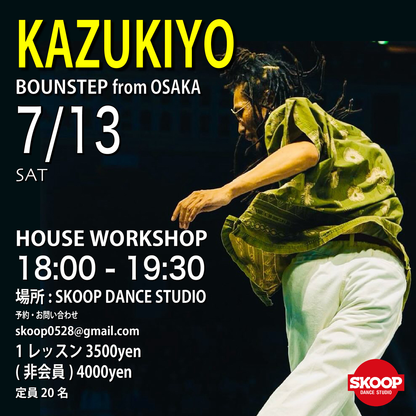 【KAZUKIYO SPECIAL HOUSE WS】 日時 2024年7月13日(土)/場所 SKOOP DANCE STUDIO /時間 18:00 - 19:30 /1レッスン4000円 ( SKOOP会員の方は1レッスン3500円 )
