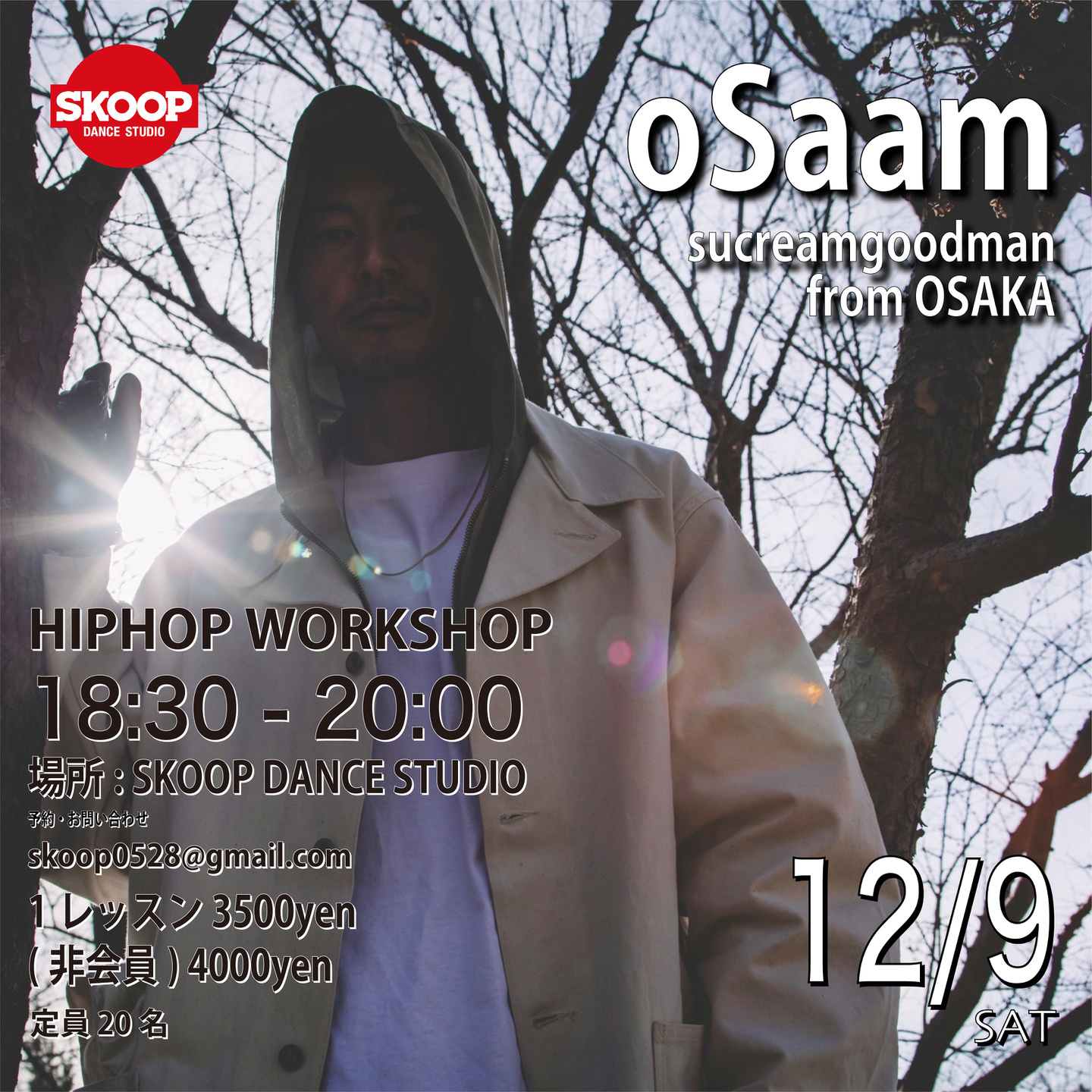 【oSaam SPECIAL HIPHOP WS】 日時 2023年12月9日(土)/場所 スクープダンススタジオ /時間 18:30 ~ 20:00 /料金 1レッスン4000円 ( SKOOP会員の方は1レッスン3500円 )