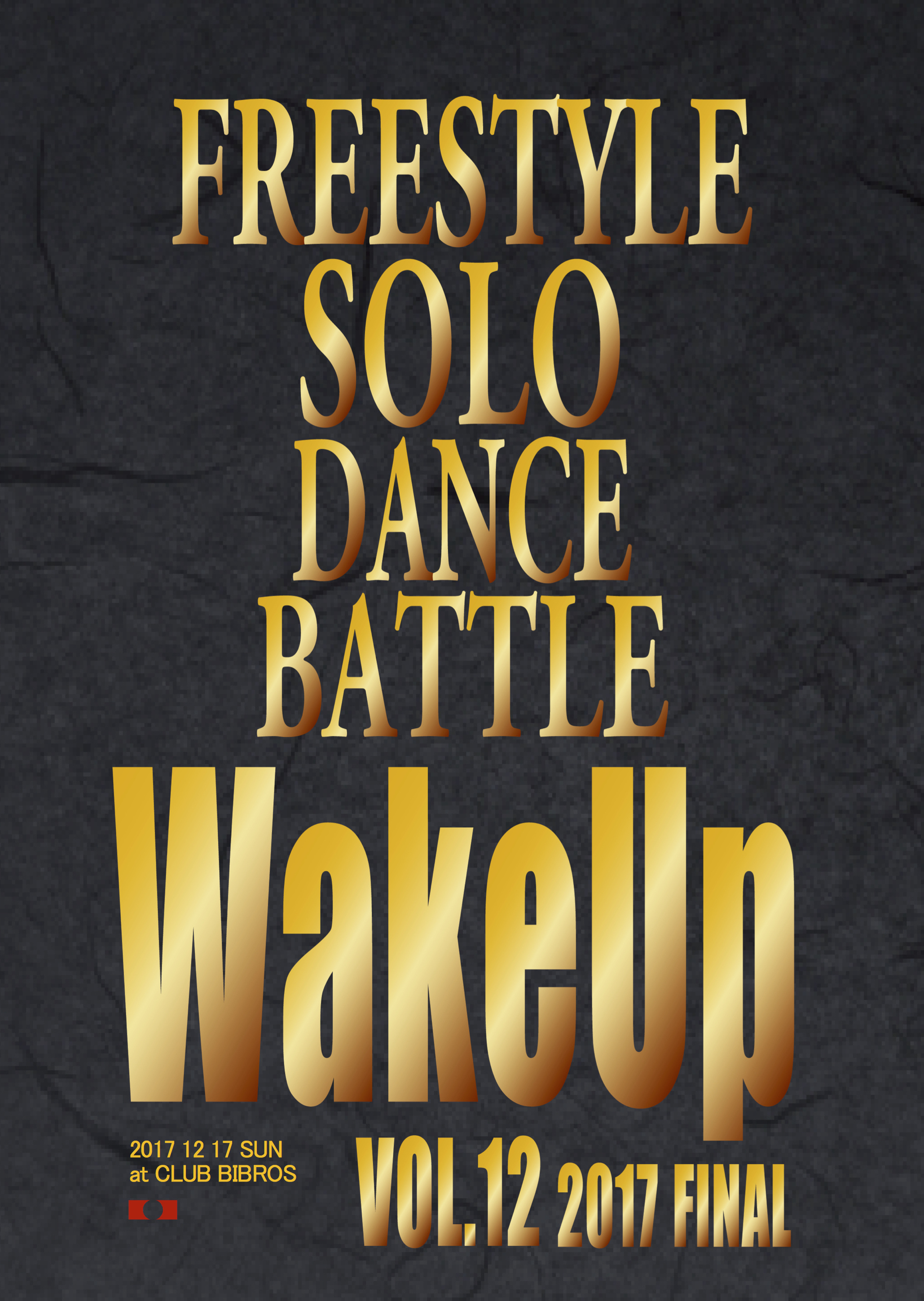 【FREESTYLE SOLO Dance Battle WAKEUP vol.12】 日時 2017年12月17日(日)/場所 BIBROS /開場 11:00 開始 12:00 /スタイル FREESTYLE SOLO BATTLE